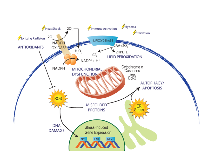 氧化应激可通过测量活性氧(ROS)来直接评估,或通过过度产生的ROS对脂质,蛋白质和核酸造成的相关损害来间接评估。尽管直接测量ROS是理想的方法,但是与ROS的瞬时特性相比,通常更依赖于间接方法因为生物分子上的损伤标记相对稳定。